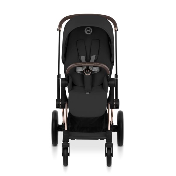 Cybex Priam 2026 är full av funktioner som gör vardagen smidigare. Du fäller ihop vagnen med en hand, spänner fast barnet snabbt med den praktiska endragselen och justerar teleskophandtaget för optimal körhöjd. Samtidigt rymmer den extra stora varukorgen allt från skötväska till shoppingpåsar.