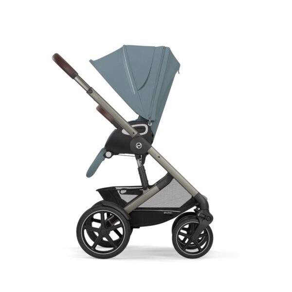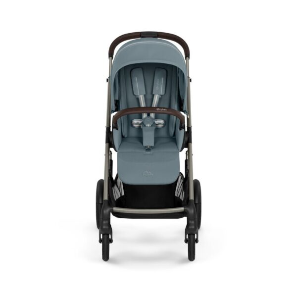 CYBEX Talos S Lux Duovagn Stormy Blue är byggd för att klara mer än släta trottoarer. Den heltäckande fjädringen ger en mjuk och följsam körning. Vagnen rullar stabilt även när underlaget blir ojämnt.